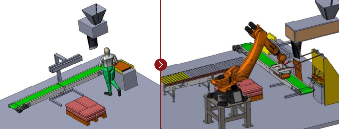 És freqüent trobar línies d’ensacat i/o paletitzat semimanuals, on el client vol augmentar el grau d’automatització de la seva instal·lació. En aquest cas, la resposta dels fabricants de maquinària sempre és la mateixa: la substitució dels equips existents per equips nous.